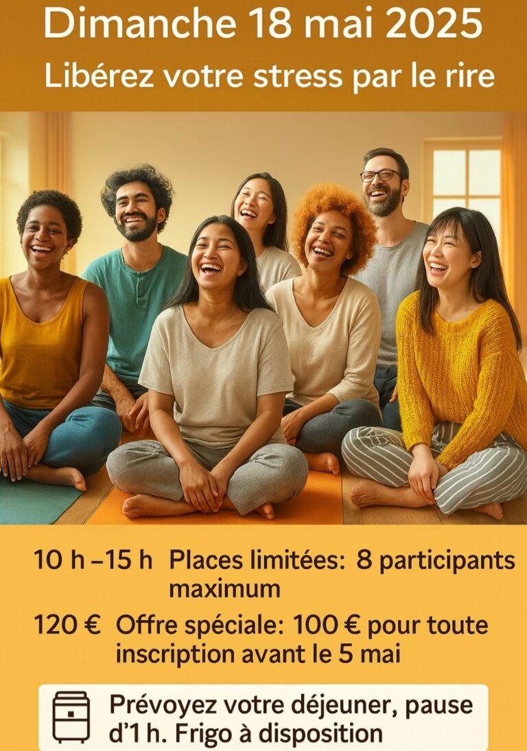 Envie de lâcher prise et de retrouver votre énergie ?Offrez-vous une pause bien-être et découvrez le Yoga du Rire pour relâcher le stress et booster votre humeur !